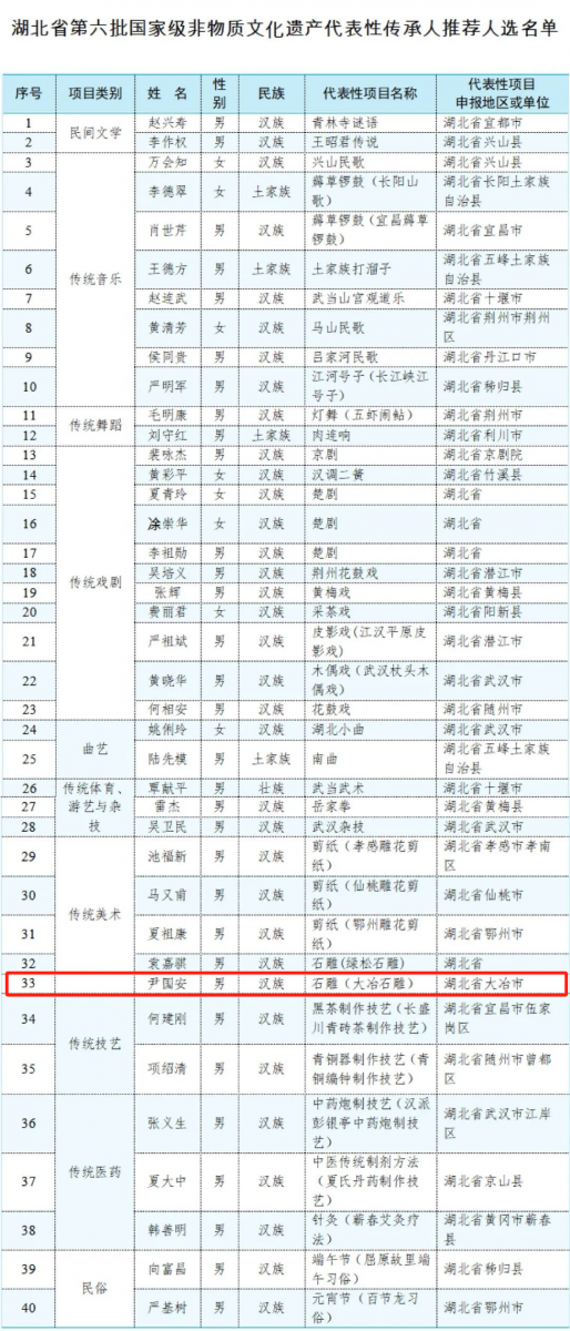 湖北40名傳承人榜上有名